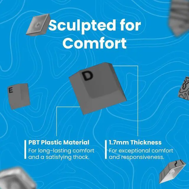 PREMIUM QUALITY: Upgrade your gaming keyboard with Deskr' s top-tier Topo Canyon Keycaps crafted from durable Dye Sub keycaps PBT material for long-lasting performance. With a 1.7 mm thickness, each keystroke feels satisfying and robust, ensuring an enhanced typing experience.