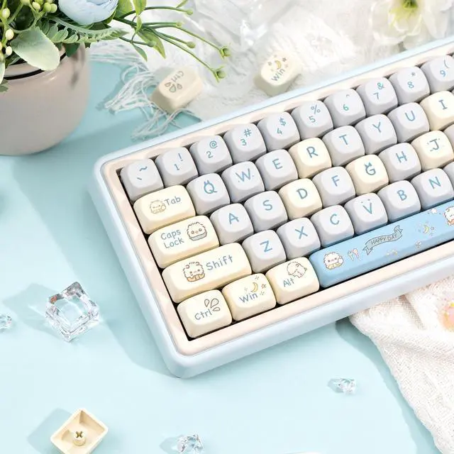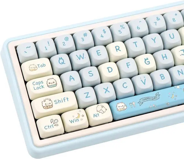 MOA profileThis customized keyboard keycaps are designed with MOA profile, the surface of the keycaps are round style, 1U keycaps have round surface, other keycaps have oval surface, the keycap base is square, and the keycaps have a nice arc from top to bottom.