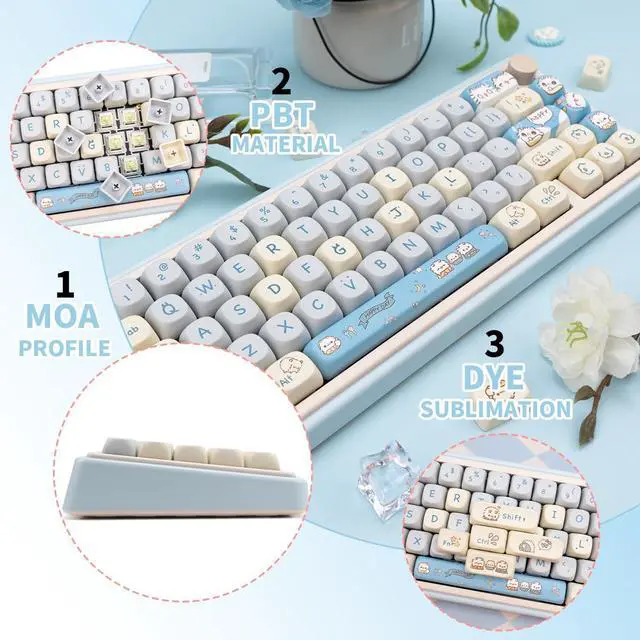 PBT KeycapsThe COOMICKEY keycap Set delivers in quality with PBT keycaps whose legends will never wear away. Compared to ABS material, PBT keys is feel textures better and can be used for a longer time. It' s dry and not easy to get oily.