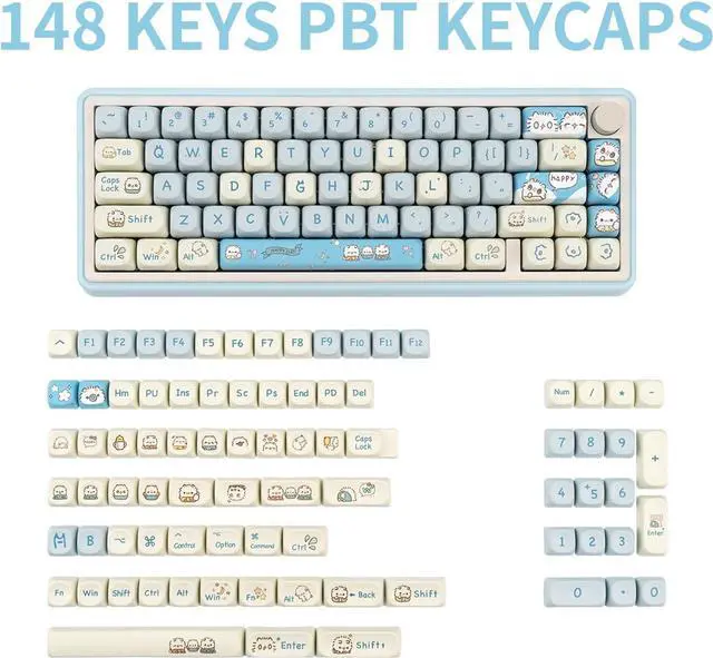 Widely CompatibleThis custom keycap set contains 148 keys. it can fit most 60%/65%/75%/80%/96%/100% (61/64/68/84/75/87/96/98/104/108) keyboards.