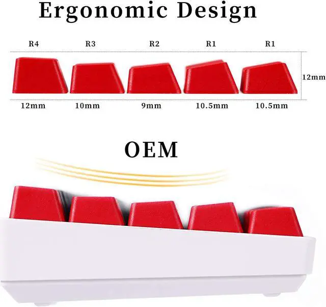 OEM Profile KeycapsThis keycap set is OEM profile which is a little higher than Cherry profile. It is not easy to fatigue after long-term use