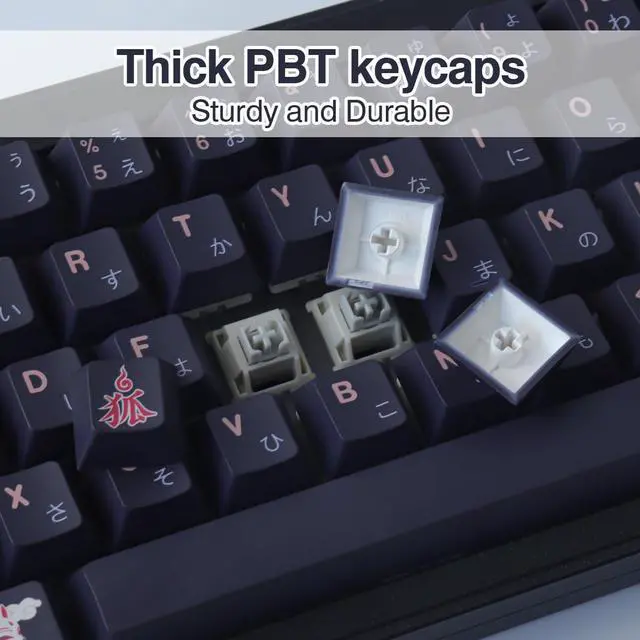 PBT Dye-Sublimation KeycapsMechanical keyboard keycaps are made of high quality PBT keycaps and oil repellent coating. Greatly improve the durability and practicality of the keycap.