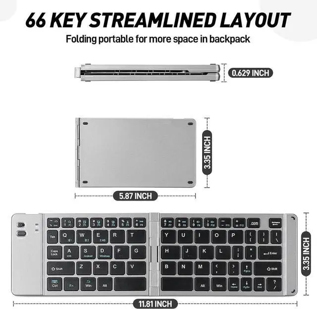 Multi-System Compatible, this folding keyboard supports connect up to 3 devices, Its widely compatible with Windows, Android, iOS, Mac OS, perfect for laptops, desktops, Phones and more devices, the low-profile scissor keys give you excellent feedback and stability, you can type the key quietly.