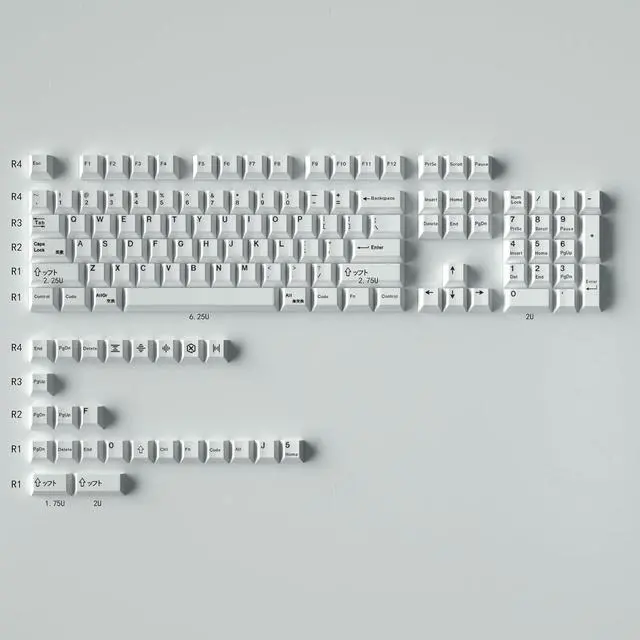135 KEYS108 Keys + 27 keys modifiers, allowing you a full compatibility with 60%, 65%, 75% and 100% form factor keyboards.
