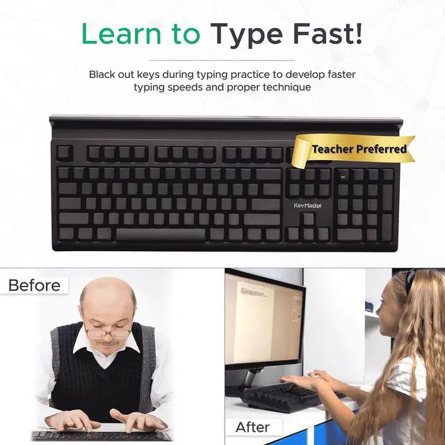 LEARN TO TYPE BY TOUCH; designed by expert teachers and suitable for learners of all ages; great teaching tool for emerging typists; curved keys and deeper strike maximize key by touch identification; black out individual keys or entire keyboard to customize touch type mastery