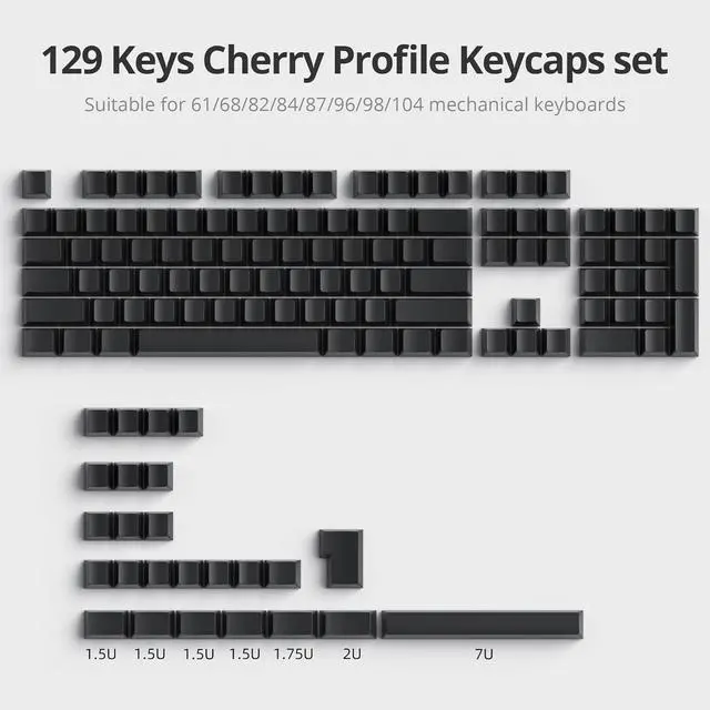Wide CompatibilityIncludes 129 keys, and the complementary keys are of different sizes. Compatible with most 60%/65%/75%/100% MX Switches Mechanical Gaming Keyboard