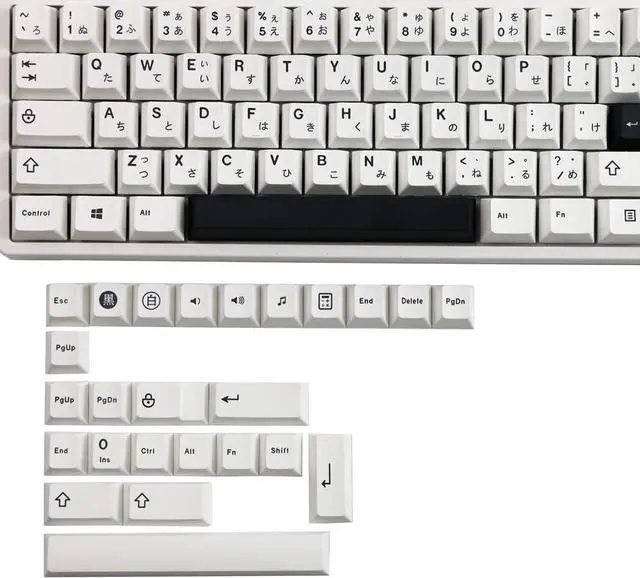 Specification: The exquisite Japanese fonts are perfectly combined with the PBT keycaps, designed with 6.25U *2 space bar white*1 black*1, 2.25 *2 enter key white*1 black*1, 1.75 u 2u 2.25 u Shift fit 60/61/64/87/96/104/108 Mechanical and optical Keyboard
