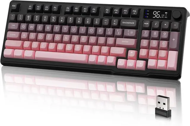 Compact 94-Keys LayoutWireless Bluetooth Gaming Keyboard - Compact 90% Unique layout is different from the traditional TKL 80% wireless mechanical keyboard, providing better typing comfort and space awareness. 26-key anti-ghosting, supports multimedia function keys. Three-color PBT keycaps combine function and appearance, suitable for office and gaming.