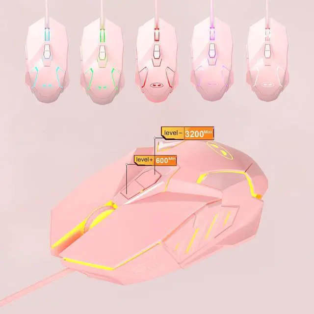 LED backlight: blue, red, green, purple, cyan, yellow and white, long press the button for three seconds to turn on/off the breathing light. adjustable speed levels: 600/800/1200/1600/2400/3200, anti-skid scroll wheelfeaturing stable control and high sensitivity.