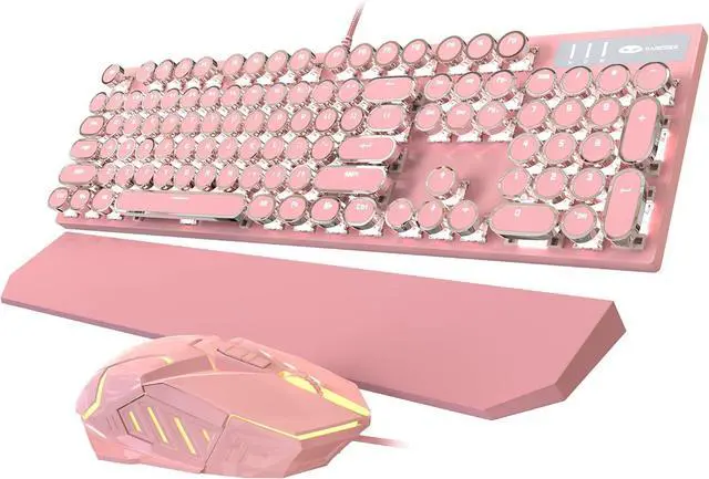 Typewriter Style Mechanical Keyboard]: It' s a cute and funning black keyboard, plating punk round keycap with beautiful blue switch make clicky-clacky sound make typing enjoyable, just like a typewriter.
