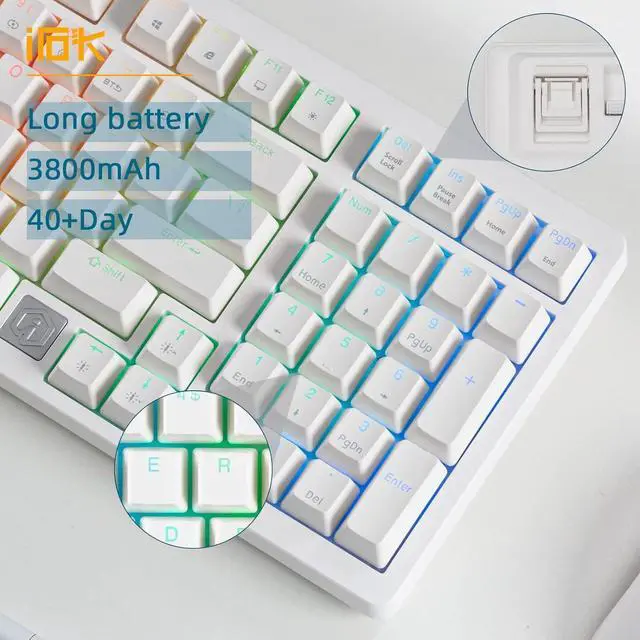 High-performance 2.4G Wireless Keyboard Up to 10m wireless working distance, enables the keyboard to achieve long-range wireless control. The receiver on the back of the keyboard. Play and plug, conveniently designed for gaming or office or home use. Two working modes, wired (Type C cable) and wireless, enjoy the freedom of being wireless while still not compromising performance by going wired.