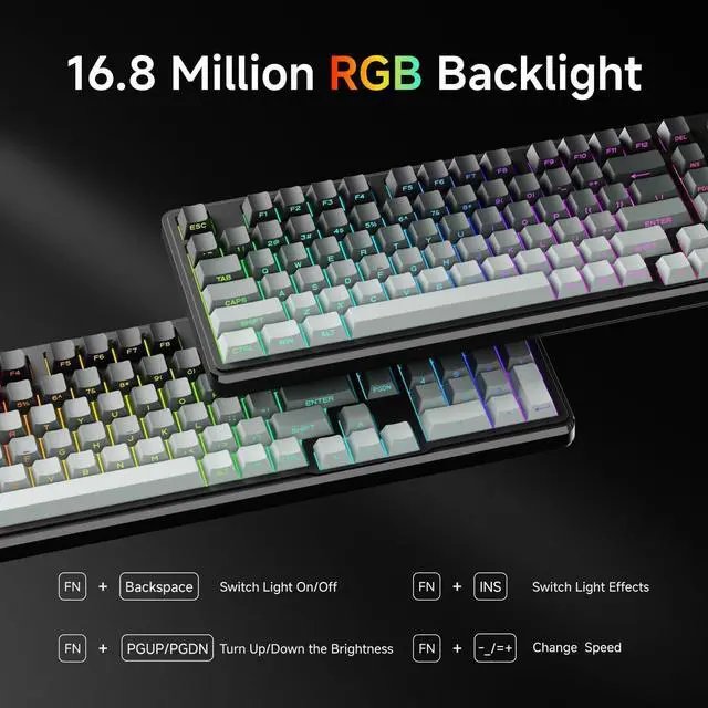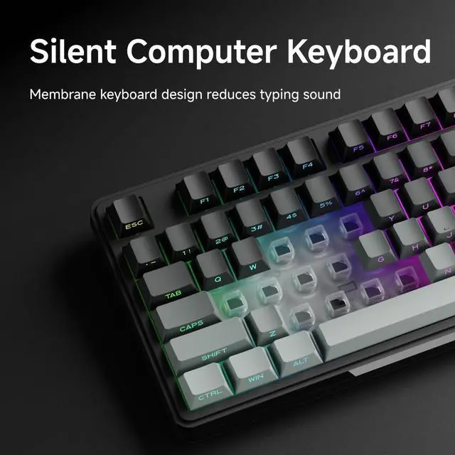 Dynamic RGB Backlighting: Elevate your setup with 12 stunning RGB lighting effects, easily switched via FN + INS. The light up keyboard customizes brightness (5 levels with FN + PGUP/PGDN) and lighting speed (5 levels with FN + _ or +) to match your mood or environment. EWEADN V102 rgb keyboard creates an immersive atmosphere whether youre working or gaming