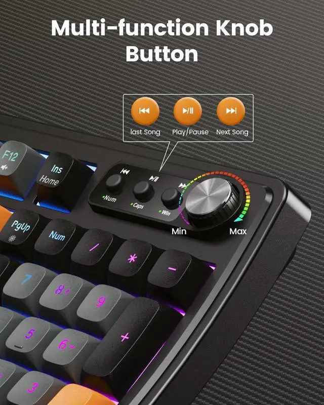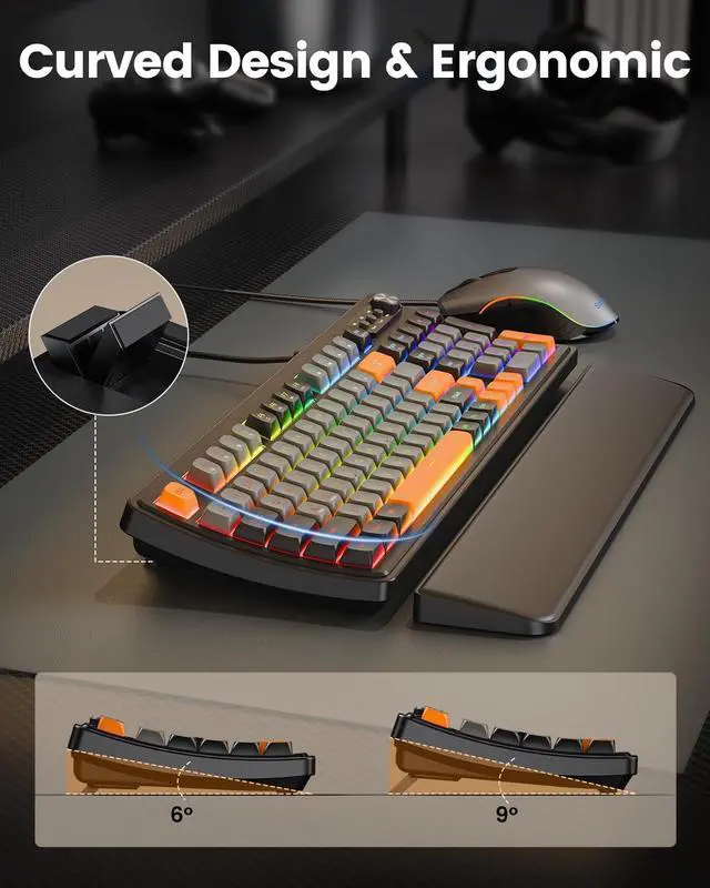 Leather Wrist Rest & Ergonomic DesignEnjoy all-day comfort with the soft, skin-friendly PU leather wrist rest that reduces wrist fatigue by 30%. The curved keycaps ensure ergonomic typing, perfect for gamers and office workers alike