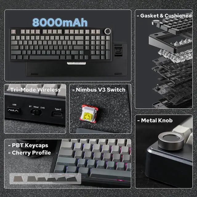 Customizable with AULA Driver: To truly make it your own, the F99 PRO gaming keyboard is customizable with the AULA Driver software. This allows you to personalize your key settings, macros, and lighting effects, making it easier than ever to tailor the keyboard to your unique gaming style and preferences