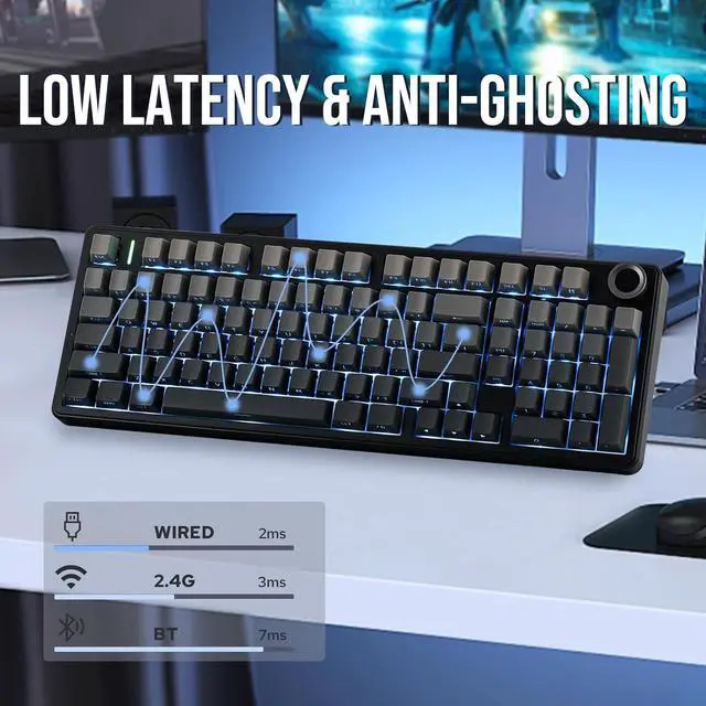 Volume Control Knob: The F99 PRO wireless gaming keyboard is a top-of-the-line product designed to elevate your gaming experience. With its 96% layout, it offers a compact yet functional design that maximizes space for gameplay. Enjoy a compact and ergonomic design with a metal knob that allows for easy volume control and media playback
