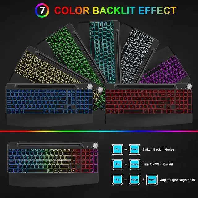 Dynamic RGB Backlit Combo: Wireless keyboard and mouse comes with 7 colors and 9 backlit effects, select from various lighting modes such as static, breathing, wave to match your style and mood, creating a visually stunning setup. RGB backlighting improves key visibility in low-light conditions, ensuring you can type with ease even in the dark. Perfectly balance work and games will be your best choice.