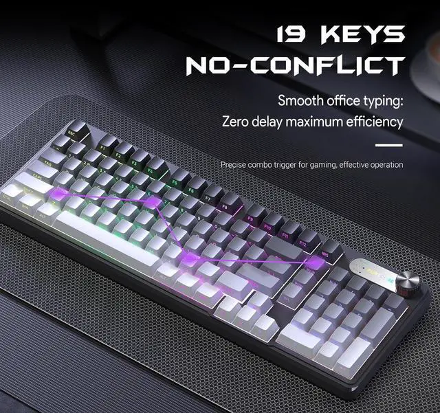 INNOVATIVE DESIGN: 98-key compact layout fully retains the number key area, saving 30% desktop space; ergonomic angle with silent gaming switches for dual effect collaboration, reducing wrist pressure and keystroke noise, remaining comfortable even after 8 hours of continuous use; IPX8 waterproof casing resists daily splashes, extending keyboard lifespan.