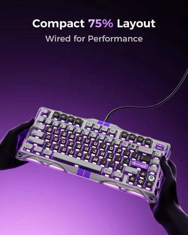 Compact 75% Layout with Hot-Swappable Switches -- Enjoy a streamlined 79-key layout with full arrow/function row support and easily replace switches without soldering.