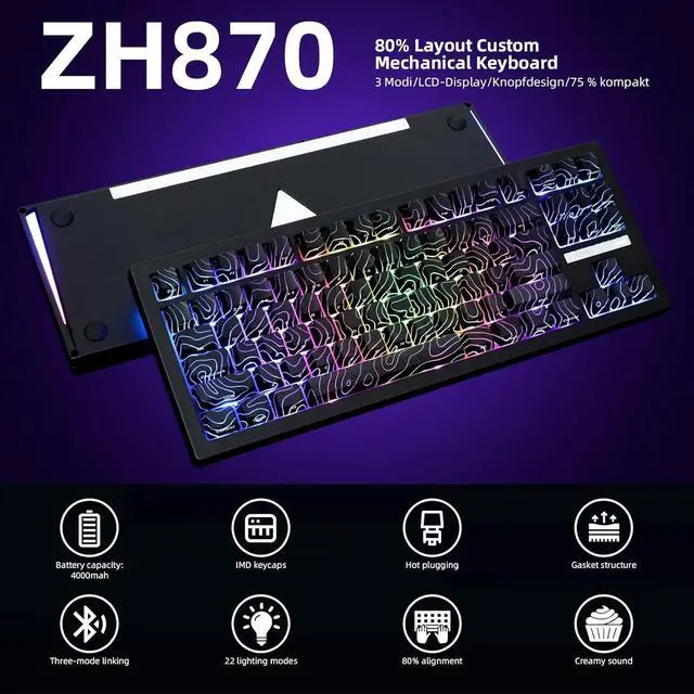 Satisfying Sound with Creamy Linear SwitchesEquipped with factory-lubed creamy linear switches and gasket mount, ZH870 delivers soft keystrokes with audible, crisp feedback. Great for users who enjoy typing rhythm and key soundnot intended for ultra-quiet setups.