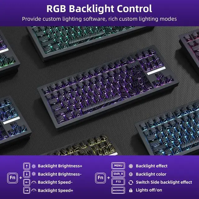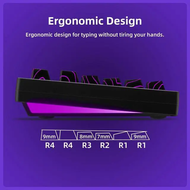 22 RGB Modes with South-Facing & Side LightingEnjoy vivid RGB with 22 preset lighting effects, including side-glow and south-facing LEDs. Combined with OEM-profile keycaps and high transparency legends, the lighting looks clean, consistent, and immersive.