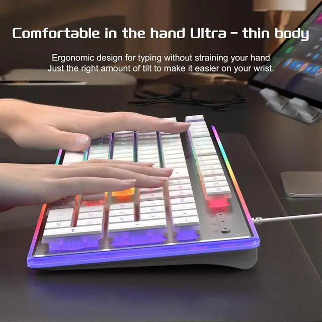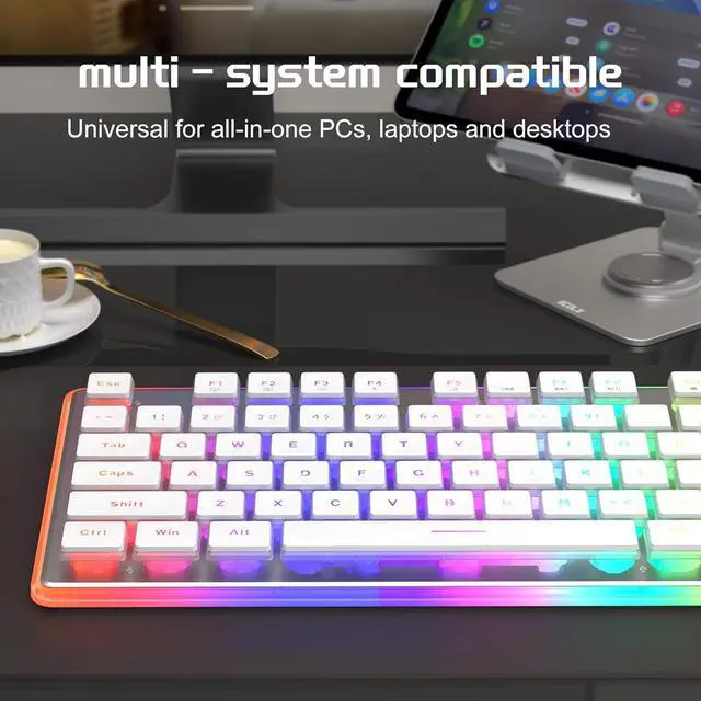 RGB Lighting Keyboard and Mouse Combo--Camiysn White keyboard with cool RGB lighting. Pudding Keycaps provide crystal clear uniform backlight and ergonomic curves, more advanced technology, clearer fonts and better light transmission. The bottom of the keyboard is designed with a foldable bracket, choose the height you need