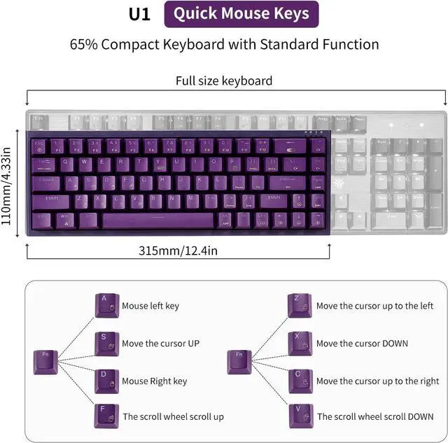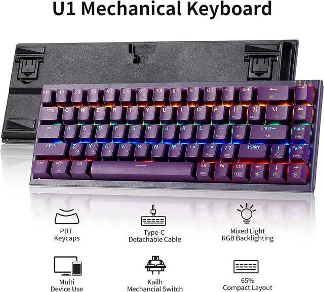 Mini 65% Keyboard - The U1 Mechanical Keyboard is an ultra-compact 68 layout keyboard that brings all the key features you need together in a minimalist design that saves more space for mouse movement and tidies up your desktop. Perfect for gaming, daily use or business travel, and great as a Christmas/Thanksgiving gift!