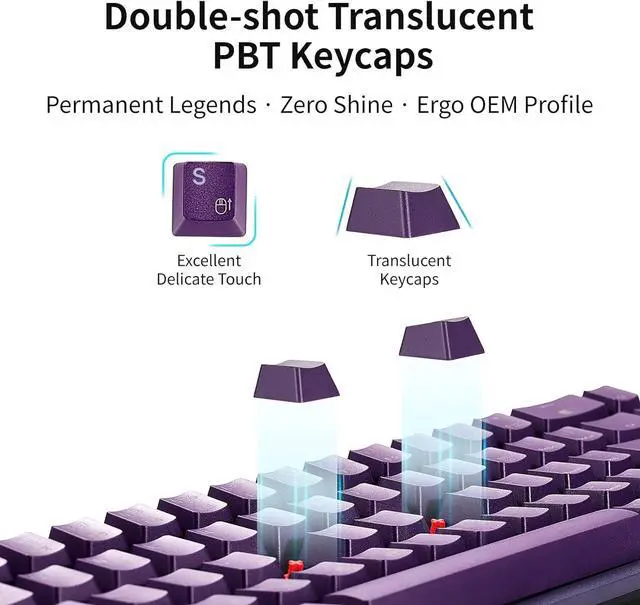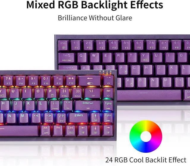 RGB Effect - The RGB gaming keyboard features 24 RGB backlight modes, double-shot injection molded PBT keycaps with transparent characters for excellent illumination and greater durability, and the glow-in-the-dark feature allows you to play freely in the dark.