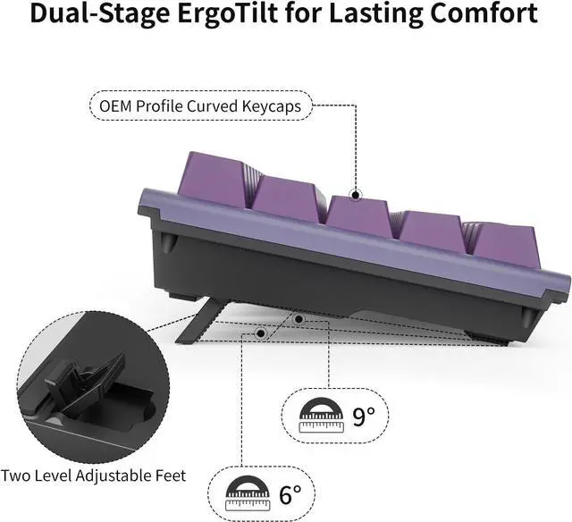 Ergonomic Gaming Keyboard - This mechanical keyboard features a scientifically stepped keycap design for maximum comfort, keeping your hands naturally positioned to minimize fatigue during long sessions. Its dual-stage kickstand provides customizable tilt angles, allowing you to find the perfect ergonomic setup for your individual needs.