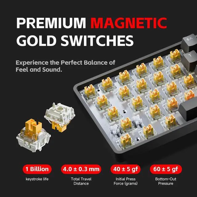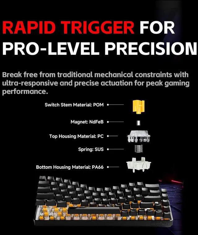 Lightning-Fast Rapid Trigger: Magnetic switches with 0.1 - 4.0 mm adjustable actuation deliver 300% faster input than traditional keyboards. Experience ultra-responsive gameplay with under 0.3 ms latency.