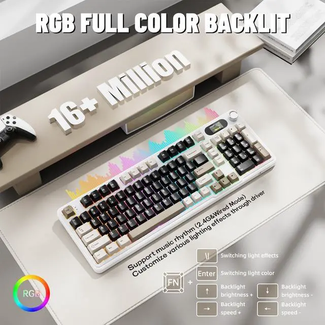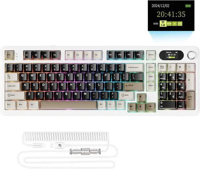 Make It YoursFully Customizable Smart Screen Break the limits of ordinary keyboards! The 1.14 -inch TFT screen lets you display custom GIFs, system status, battery life, time, connection mode, and more. Show off your creativity with personalized animations or keep track of essential data at a glance. Powered by an intuitive web-based driver, you can easily edit, upload, and switch your display content with just a few clicksno software installation needed!