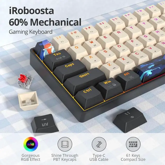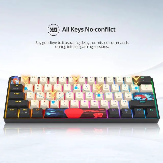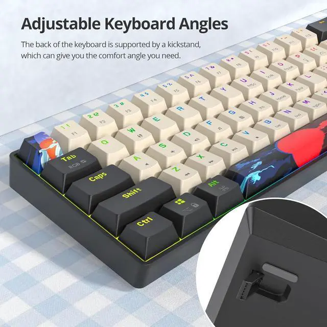 60% Portable Gaming Keyboard: Enjoy an ultra-compact and portable keyboard that offers 61 mechanical keys, giving you more space for mouse movement, offering a 60% layout that saves valuable desk space. Suitable it for gaming or working.