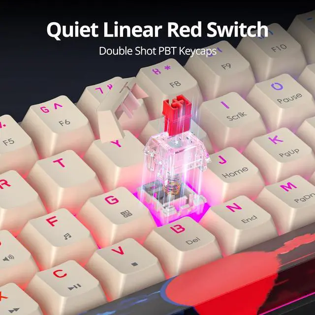 Red Switch Keyboard: This 60 percent mechanical keyboard with red switches deliver a smooth typing experience, slight key sound with minimal resistance resulting in faster and more precise keystrokes.