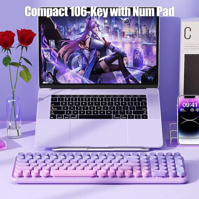 [Compact 106-Key with Num Pad] - The compact 106 keys wireless keyboard with number pad is built for productivity and efficiency. It frees up workspace on your desk without sacrificing performance and comfort during your work.