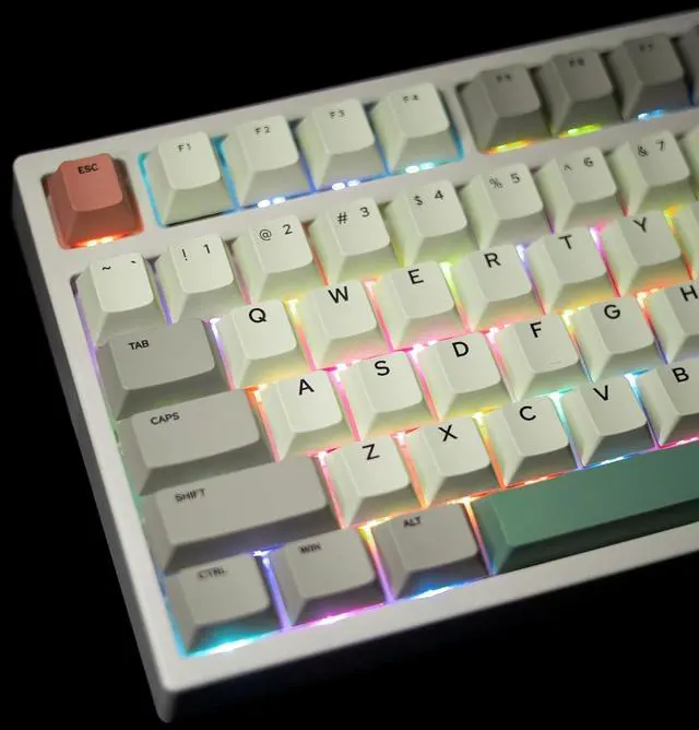 PBT Cherry profile keycaps: It looks clean and straightforward. The retro keycaps with a cherry profile and double-layer construction offer durability and a timeless aesthetic, perfect for any keyboard enthusiast.
