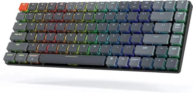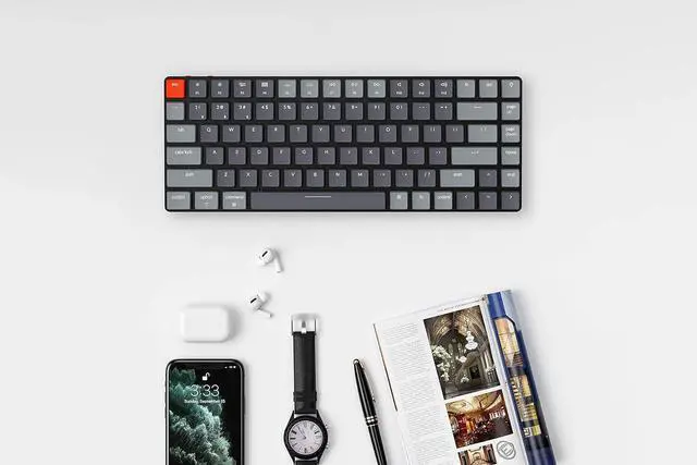 Keychron K3, a compact 75% layout 84 keys RGB backlight hot-swappable ultra-slim wireless mechanical keyboard built for peak productivity, a great tactile typing experience, and let you personalize per-key typing experience without soldering.