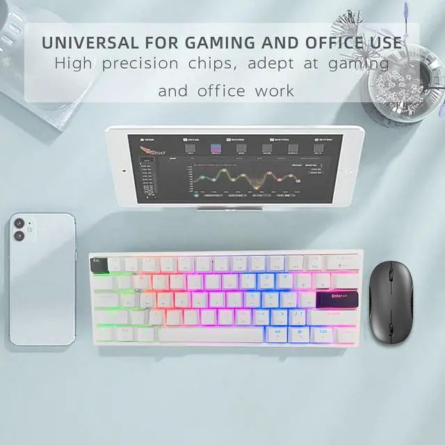 Classic 60% Compact Layout Keyboard This 60% gaming keyboard has a perfect size and it' s good for Home and Office use, ALL 61 mechanical keys are conflict free (n-Key Rollover) for ultimate Gaming performance. without Numpad, more practical for Gamers and Typist, give more space to your desktop.
