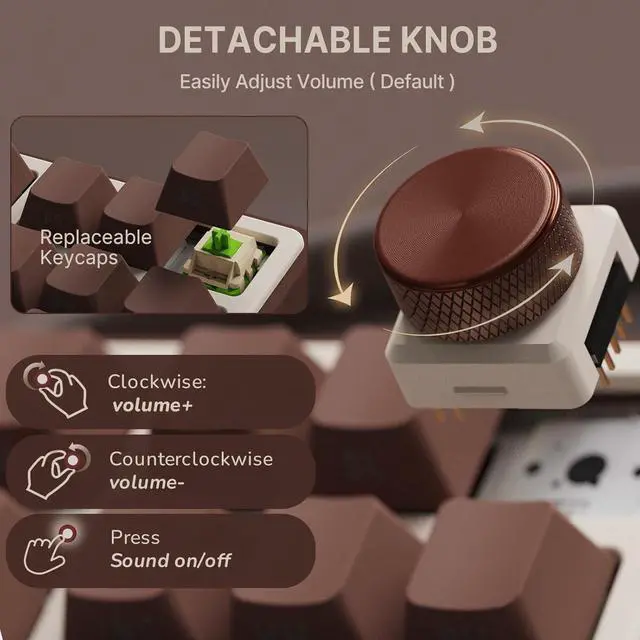 Hot Swappable Linear Switches This hot swappable mechanical keyboard comes equipped with linear matcha switches that produce a thocky, creamy sound. The 3/5-pin PCB socket allows for easy switch on keyboard switches, including the knob, making it ideal for DIY enthusiasts and gamers looking to create their perfect setup