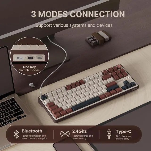 Multi-device Connection In Bluetooth mode, the pc gaming keyboard can connect to 3 different wireless devices at the same time, you can quickly switch between them with a short press Fn+Q/W/E. The bluetooth keyboard is suitable for Windows, Mac, and Android, no longer limit the connection possibilities