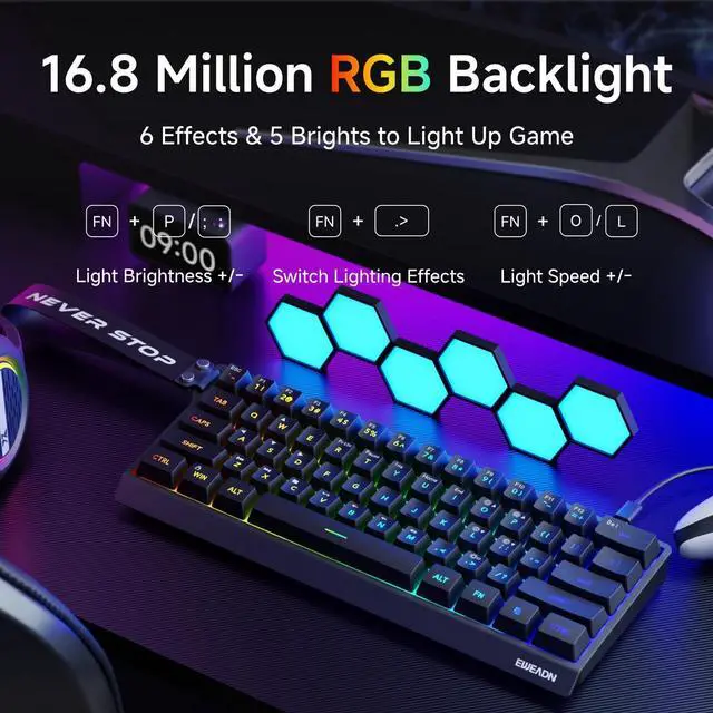 Design: The EWEADN F61' s space-saving 60% layout packs everything you need into a 60% gaming keyboard wired. It' s perfect for gaming, office work, or travel, clearing up your desk space without losing the keys you use most. Fit for gamers and everyday typists alike