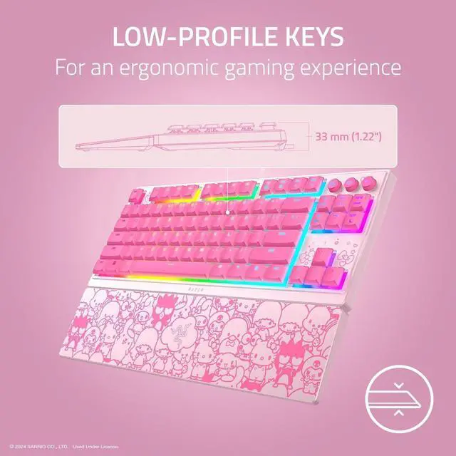 LOW-PROFILE KEYS With slimmer keycaps and shorter switches, enjoy natural hand positioning that allows for long hours of use with little strain