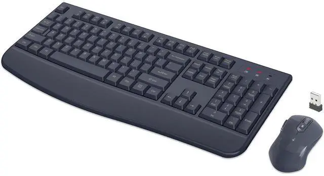 [Comfortable Wireless Keyboard Mouse Combo] : This wireless keyboard mouse combo has a comfortable touch and typing feel, this wireless keyboard design with palm rest and folding holder that can protect your wrists from injury even when typing for a long time. Note: The USB receiver is in the battery compartment of the keyboard, you can find it when open the keyboard battery cover.