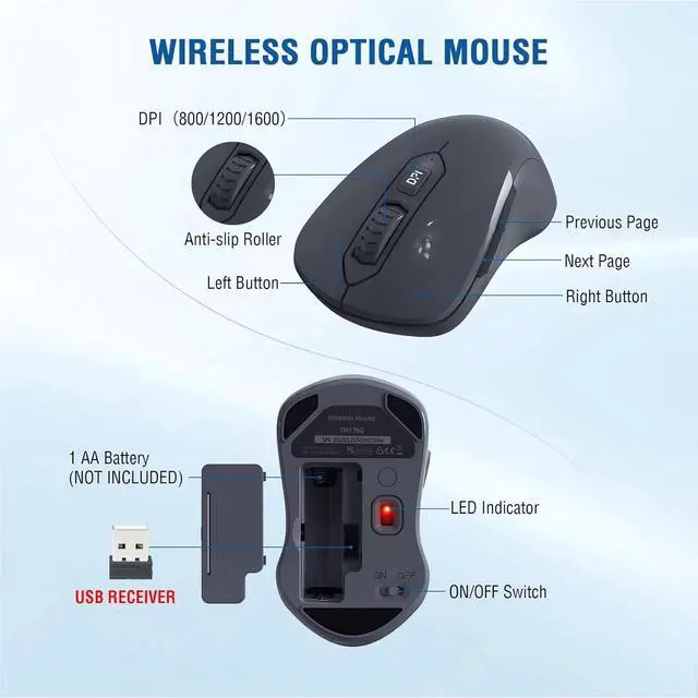 [3 Adjustable DPI Wireless Mouse] : This is a optical wireless mouse with 3 levels adjustable DPI(800/1200/1600), you can get your favorite mouse movement speed by adjusting the DPI button. Optical wireless mouse also can smooth movement even on smooth surfaces. In addition, this wireless mouse is symmetry design, no matter you are Right handed Left handed, both hands are available, suitable for all people.