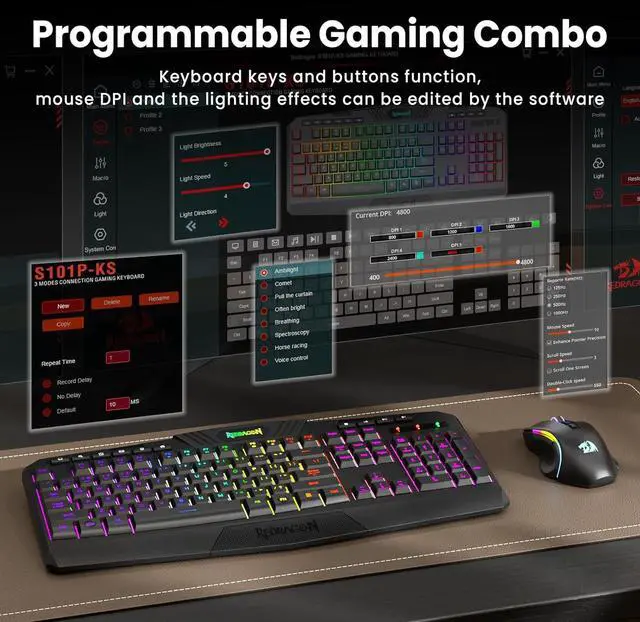 Programmable Keyboard and Mouse GamingYou can customize the keyboard keys and backlighting as well as the DPI value and polling rate of the mouse (125-1000Hz) and remap the 7 mouse buttons through the software (download the software on .com). The ergonomic design of this gaming keyboard makes you feel comfortable while typing and gaming!