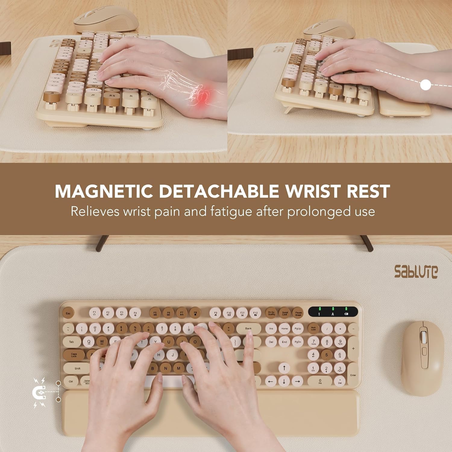 COLORFUL MILK TEA TYPEWRITER KEYBOARD: Experience the perfect blend of vintage industrial aesthetics with a modern wireless keyboard. Enjoy a retro feel and comfortable touch, all in stunning colors that add a unique feeling to your workspace.