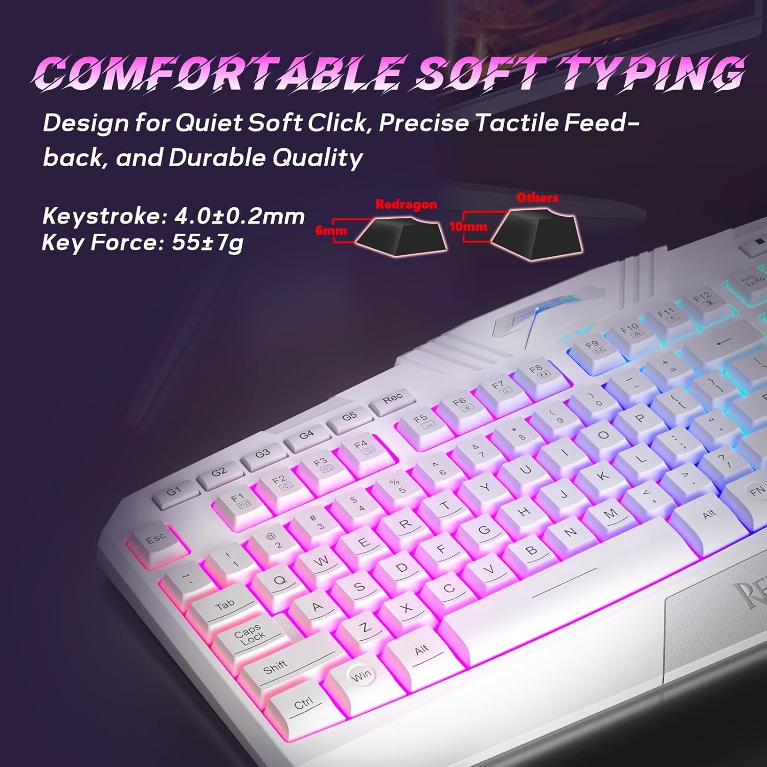 Eyesoul Updated Programmable Gaming Keyboard and Mouse, RGB Backlit Keyboard Mouse with Software, Independent Macro Record Keys, Value Combo Set, White - S101-3 PRO