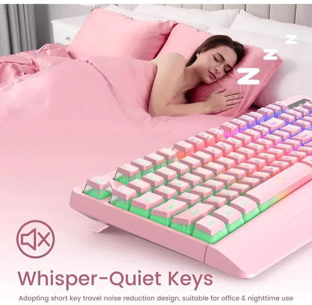 Comfortable and Quiet Typing FeelUnlike mechanical keyboards, the membrane keys move a short distance, making typing faster and easier. At the same time, there is no "click" sound when typing, and it will not disturb others, which is very suitable for games or office work. Crater structure, button life more than 5000W times.