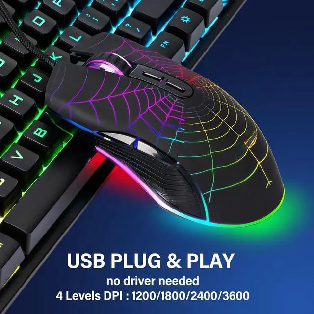 7 Color-Backlight Gaming MouseErgonomically designed construction,anti-skid scroll wheel,7-color RGB breathing backlight , supporting 4 levels (1200/1800/2400/3600) of DPI adjustment.The illumination can be completely turned off. It is good for you playing games, the mouse can move exactly whatever and wherever you want. While playing games, the keyboard and mouse can create a dazzling lighting ambience effect.