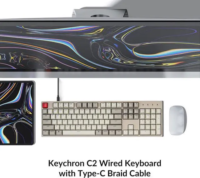 The Keychron C2 (non-backlight version) is a 104 keys full size wired retro color keycaps mechanical keyboard made for Mac and Windows. Engineered to maximize your productivity with most popular full size layout with number pad.