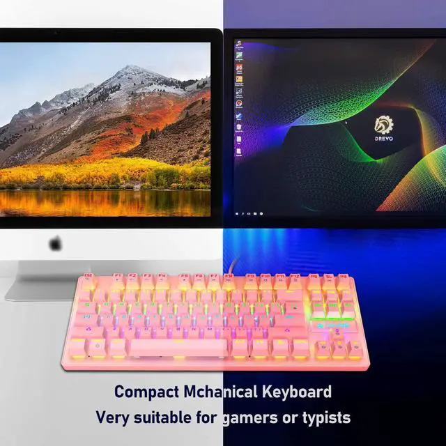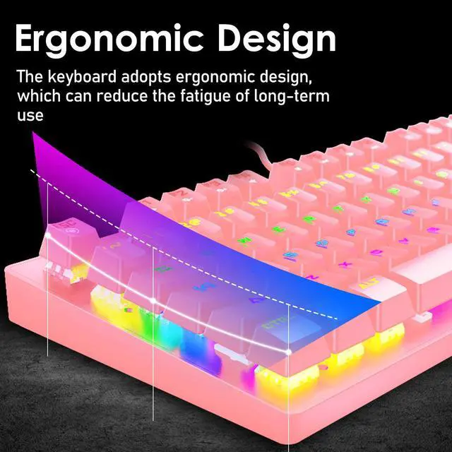 Mini Mechanical Keyboard Professional Mechanical Keys, 87 keys compact gaming keyboard, giving you more space on your desk to move mouse or put other devices. Ergonomically designed, the keyboard can reduce finger fatigue after prolonged use.