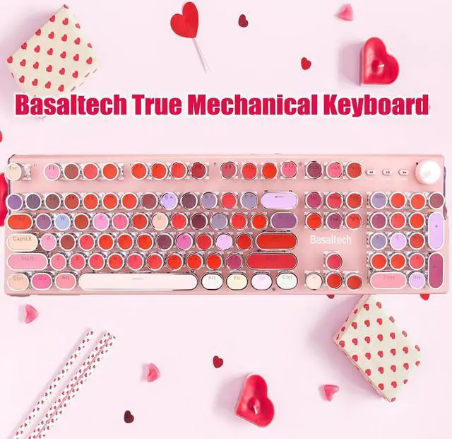 Mechanical Blue Switch Gaming Keyboard - Mechanical Blue Switch Gaming Keyboard (Cherry Blue Equivalent) for ultimate gaming performance. Retro keycap looks like a classical typewriter, brings you comfortable typing feeling & stable clicking touch. The Mechanical Keyboard Keys offer medium resistance, audible Click Sound & Tactile Feedback. Sensitive and Responsive. Easy to press and fast response.